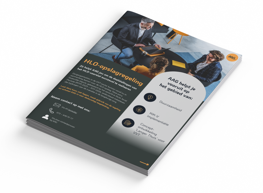 Het indienen van je HLO-voorstel is stap één, maar de echte uitdaging is uitvoering. AAG helpt je om je plannen tot leven te brengen – van duurzaamheid en KIK-V tot conceptontwikkeling voor langer thuis wonen. Lees er meer over in onze brochure en ontdek hoe wij jouw HLO-doelen helpen realiseren.